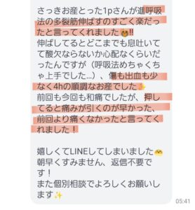 さて、先日分娩整体Basicを学ばれた助産師さんからの、LINE報告がきました!