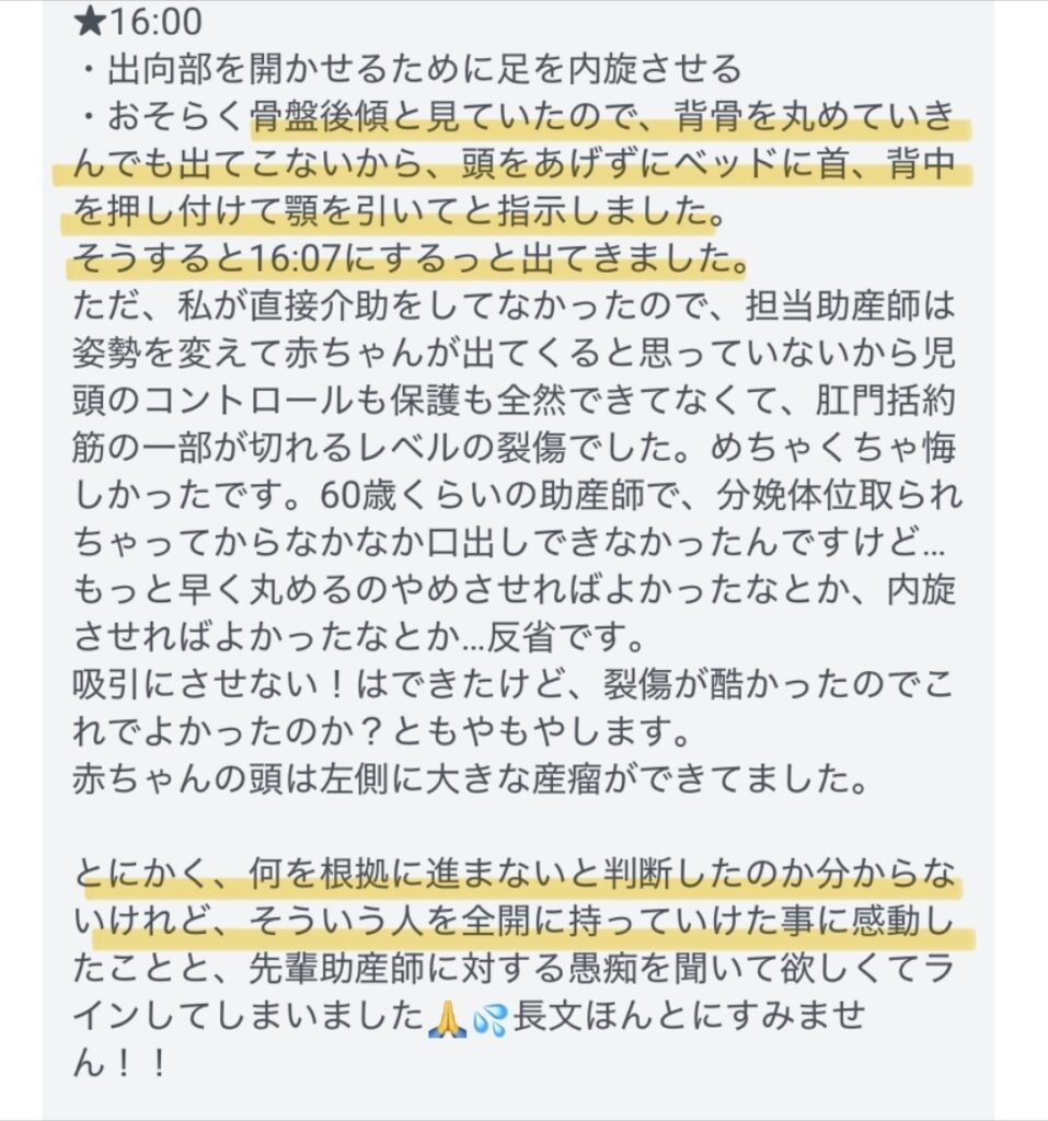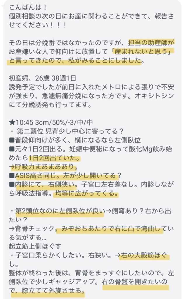 今回の助産師さんは、3月に分娩整体Basicを学び、そのまま静かにされておりましたが、最近、分娩整体Basicの復習に参加されて、そのまま個別相談で分娩の振り返りをして、ぐんっと理解度が増えて、解剖を考えてママが楽になる方法でお産を進めることを楽しむようになってきた助産師さんです!