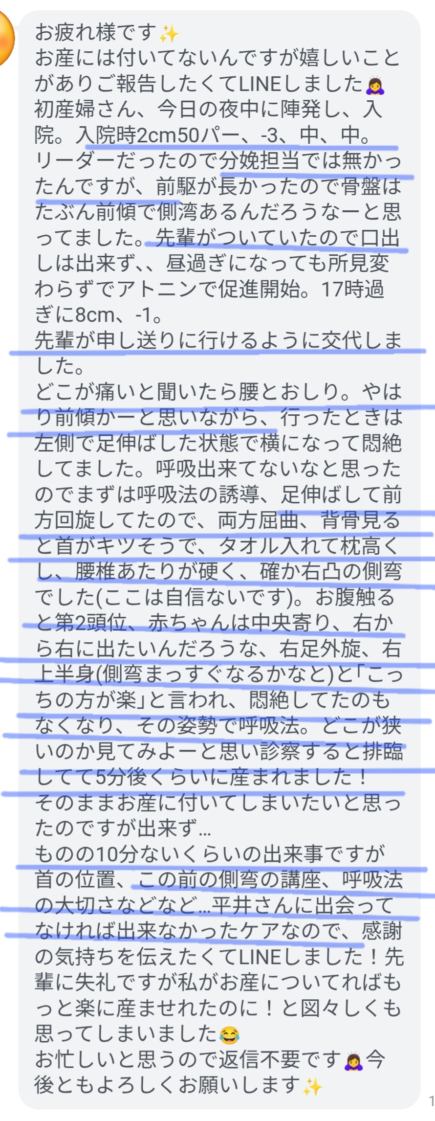 さて、先日助産師labの受講生さんからこんなLINEが来ました
