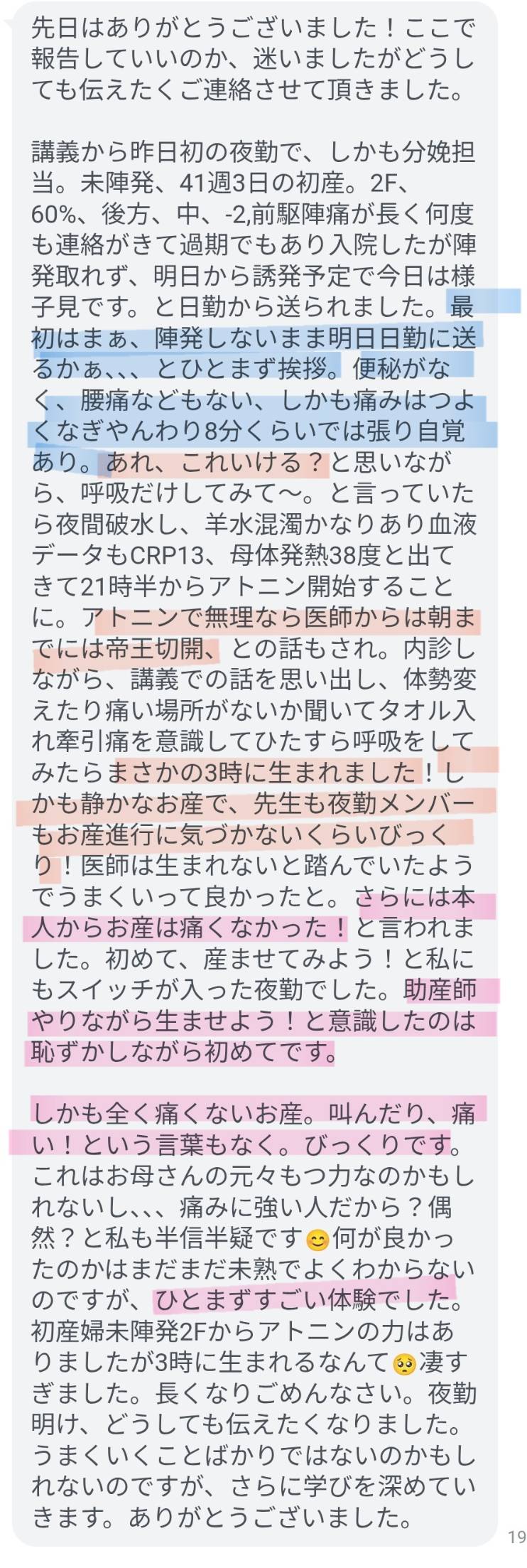 さて、先日「助産塾」を学ばれた5年目の助産師さんからの投稿!
